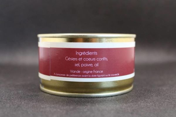 ingrédients : gésiers et coeurs de canard confits, sel, poivre, ail.